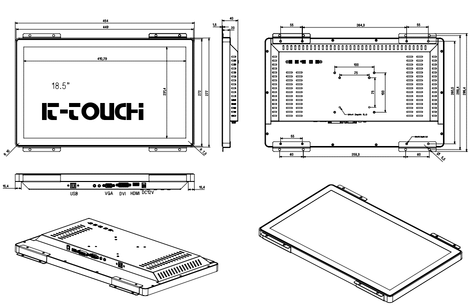 ابعاد مانیتور صنعتی 18.5 اینچ خازنی